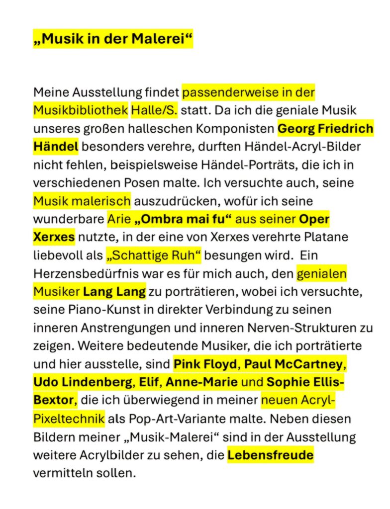 - Sonderausstellung „Neue Malerei - Dreiviertel Alt“ zum 75. Geburtstag 2023/24 in der Domgalerie Merseburg